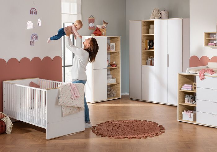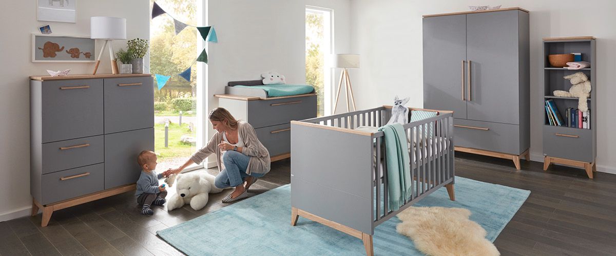 4-fach höhenverstellbares Babybett mit Schlupfsprossen für sicheren Aus- und Einstieg. Kommode mit Wickelaufsatz, Kopfschutz sowie Schubladen mit komfortablem Selbsteinzug. Geräumige Wandregale und Kinderkleiderschränke mit Schiebetüren und Schutz vorm Finger einklemmen – das alles und noch viel mehr steckt in Babyzimmern von PAIDI, die es in unzählig vielen und flexiblen Varianten gibt. Im zeitlos modernen Design oder mit skandinavischem Hygge-Feeling oder auch gemütlich und heimelig mit Massivholz, von strahlend weiß über Birke bis hin zum Eiche-Look – das Wohlfühlen in Kindermöbeln von PAIDI kennt keine Grenzen.
