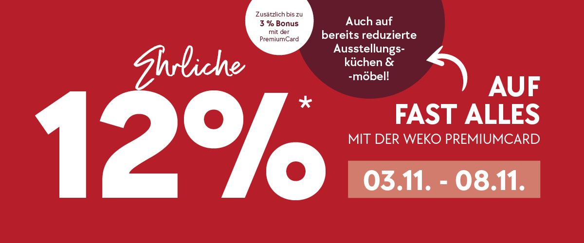 + bis zu 3% Bonus auf Ihrer WEKO PremiumCard!