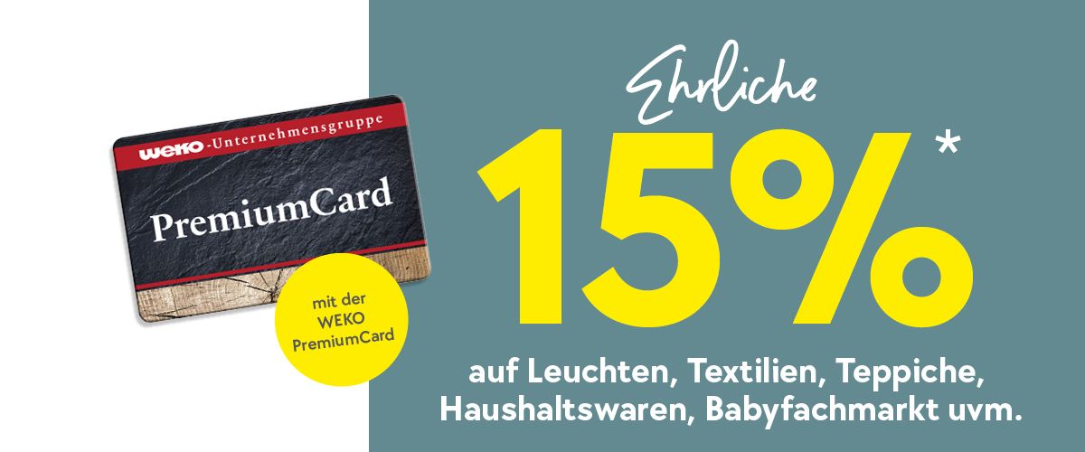 Ehrliche 15%* Nachlass mit der WEKO PremiumCard!