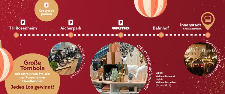 An allen vier Adventssamstagen sind zwei Ringlinien im 30-Minuten-Takt in Rosenheim unterwegs und bringen die Fahrgäste bequem zu WEKO, Radlherz, in die Innenstadt und mehr.