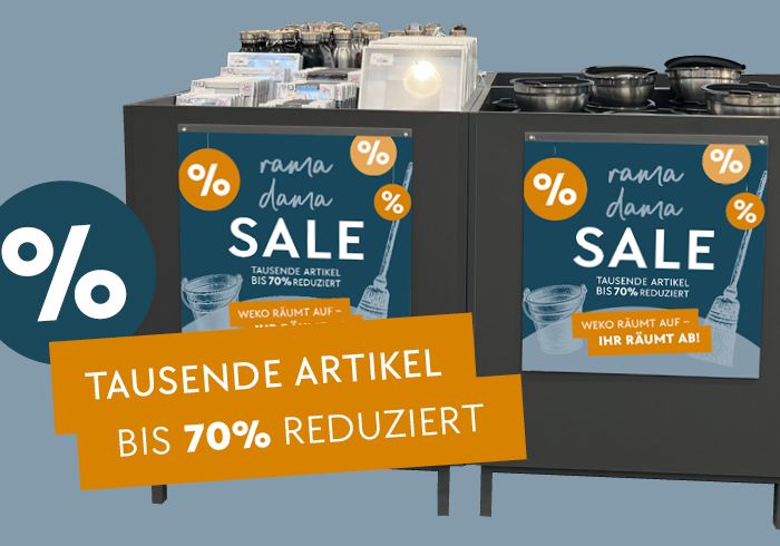 Jetzt heißt es: Platz schaffen für Neues! Beim rama dama SALE wird bei WEKO ordentlich aufgeräumt – und Ihr profitiert von tausenden stark reduzierten Artikeln.
