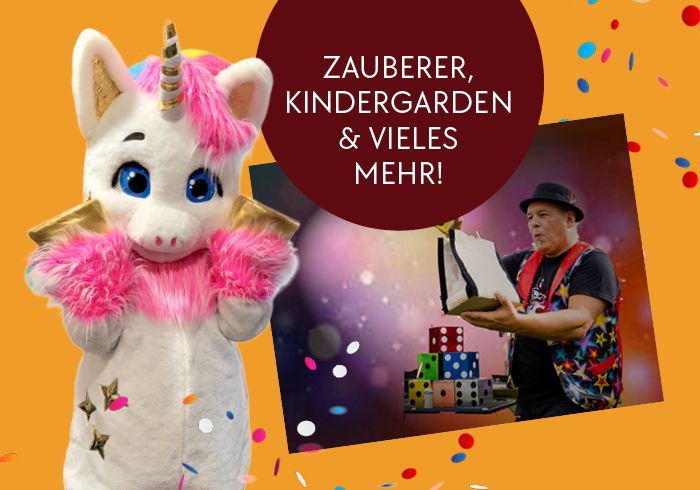 Für ein aufregendes Rahmen-Programm sorgen Zauberer Klaus, Einhorn Maskottchen "Luna", die Kindergarde des Narrenkobel aus Pfarrkirchen & die Kindergarde der Faschingsfreunde aus Hebertsfelden.