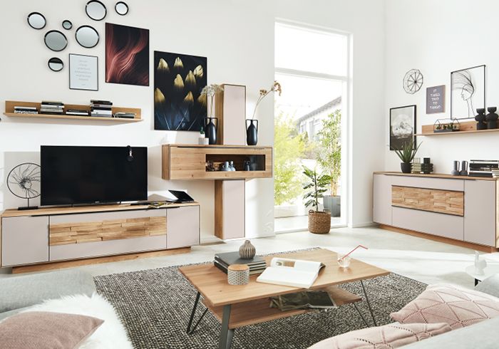 KARA-FRAME - Kontrast und Wirkung - der Name ist Programm! TV- und Hifi-Geräte finden ihren richtigen Platz. Integrierbare Technik sorgt für optimale Klangentfaltung, punktuelle LED-Beleuchtung setzt warme Akzente. Die spannende Optik entsteht durch farbig abgesetze Rahmen. Kombinieren Sie mit Materialien und Farben. Eine breite Palette hochwertiger Echtholzfurniere und Lackausführungen steht zur Wahl.