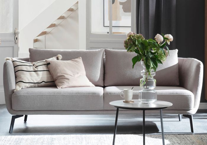 Polstergarnitur, 3-Sitzer, ca. 210x71x91 cm, Bezug Trend platin inkl. 2 Armlehnen, Metallfuß schwarz matt, Sitzhöhe ca. 45 cm, in unterschiedlichen Größen, Bezügen, Farben & Füßen erhältlich