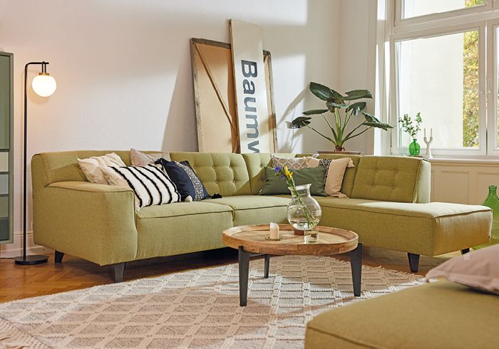 Nordic Chic - Hochwertige Umsetzung des Retrotrends mit Knopfheftung, Keder und ausgestellten Holzfüßen | Art. 200078209