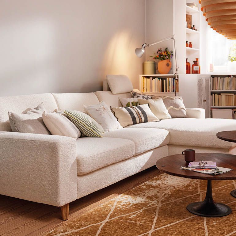 Bouclé-Sofas sind modern und trendig und verleihen jedem Wohnzimmer einen individuellen Charakter. Das Material ist weich, pflegeleicht und hat eine interessante Struktur, die jedes Wohnzimmer mit einem Hauch von Weichheit und Luxus bereichern.